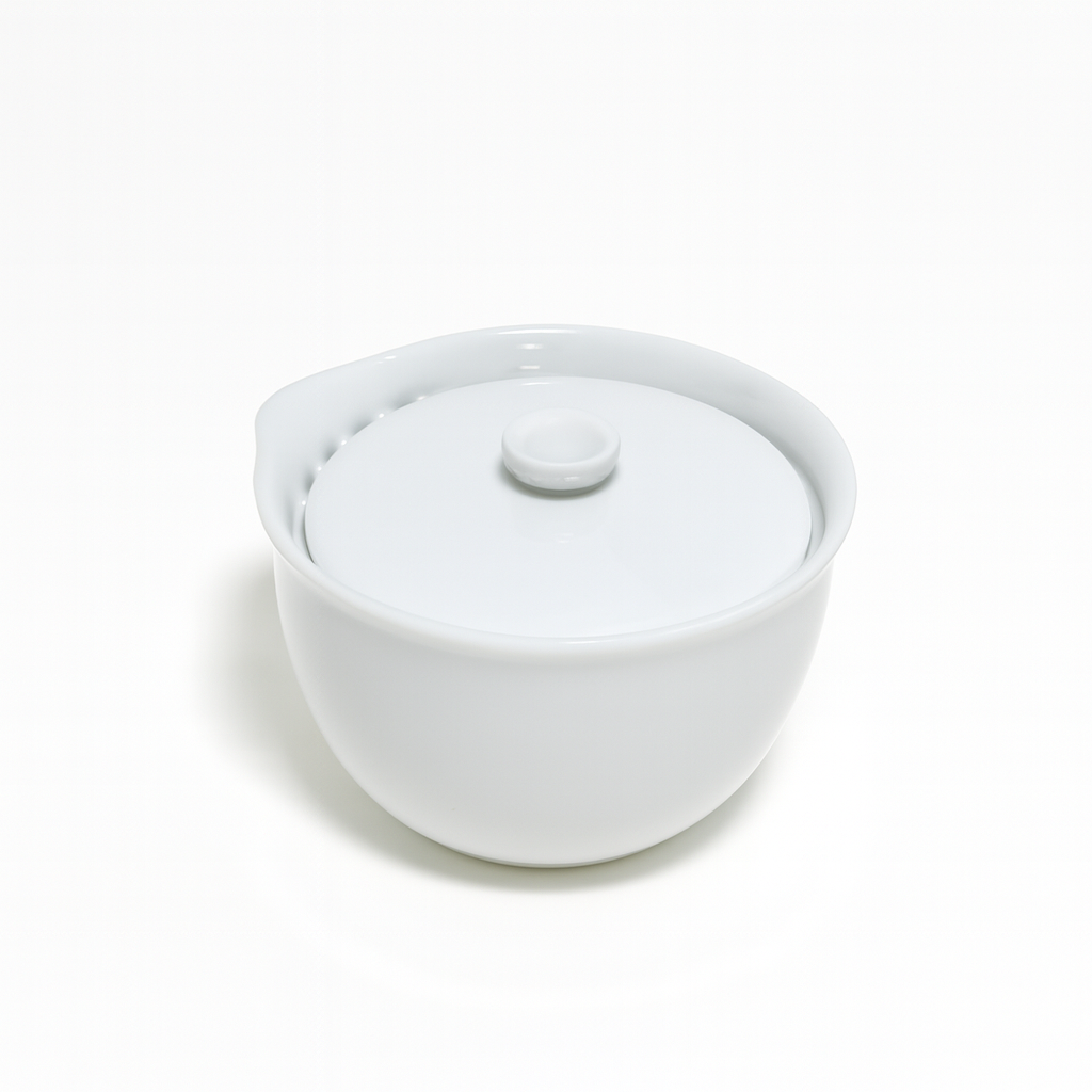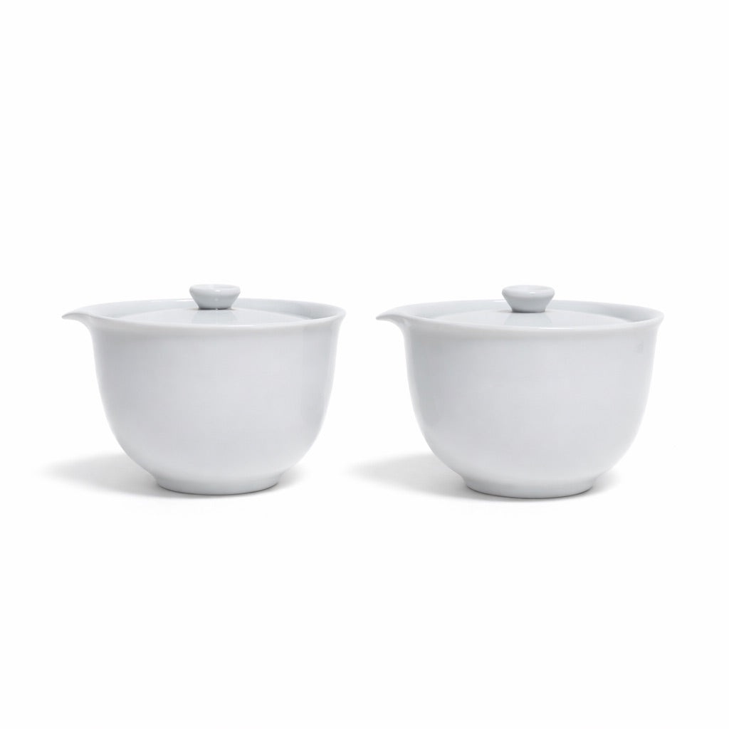 Refined white porcelain pitcher set crafted for modern tea preparation. The smooth glazed finish highlights its clean silhouette and soft curves. Designed with an integrated pour spout for precise, controlled serving.